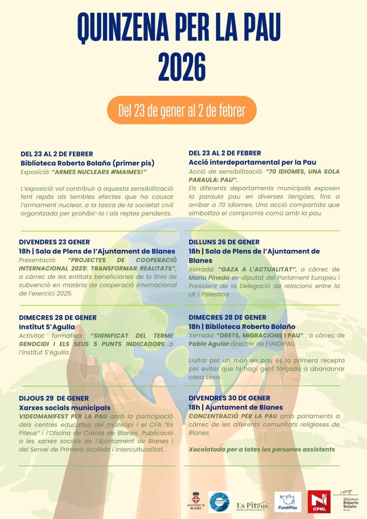 Concentración por la Paz/Peace Rally/Rassemblement pour la Paix DIA: 30 de gener HORA: 18:00 h LLOC: Davant de l’Ajuntament